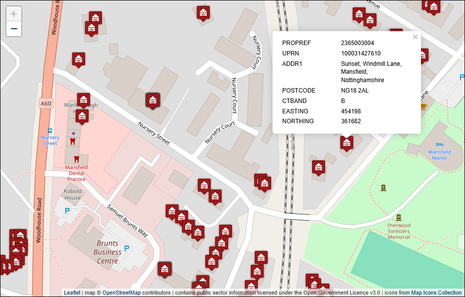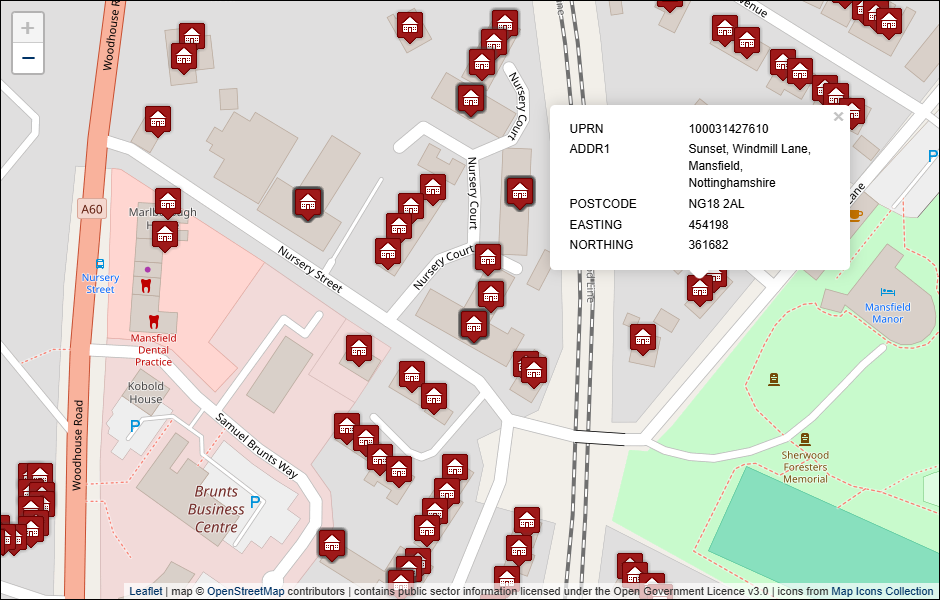 Geocoded open versions of Mansfield District Council address datasets